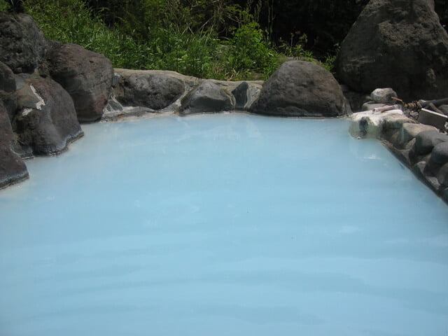 Why the onsen water become a cobalt blue color? It is a principle as same as you see the blue for sky. TSome onsen contain particles called silica toroid scatters only short wave-length blue light. That’s the reason.You can take the cobalt blue onsen in Beppu, Yufuin and nearby areas. In Honsyu Island, you can find a cobalt blue Onsen at Magoroku Onsen in The Nyuto Onsen area.The cobalt blue color Onsen is very clear at first, the color changes to thin blue as time passes. And then onto milk white blue , becoming cobalt blue color lastly. You will find a couple of cobalt blue Onsen in Beppu city.